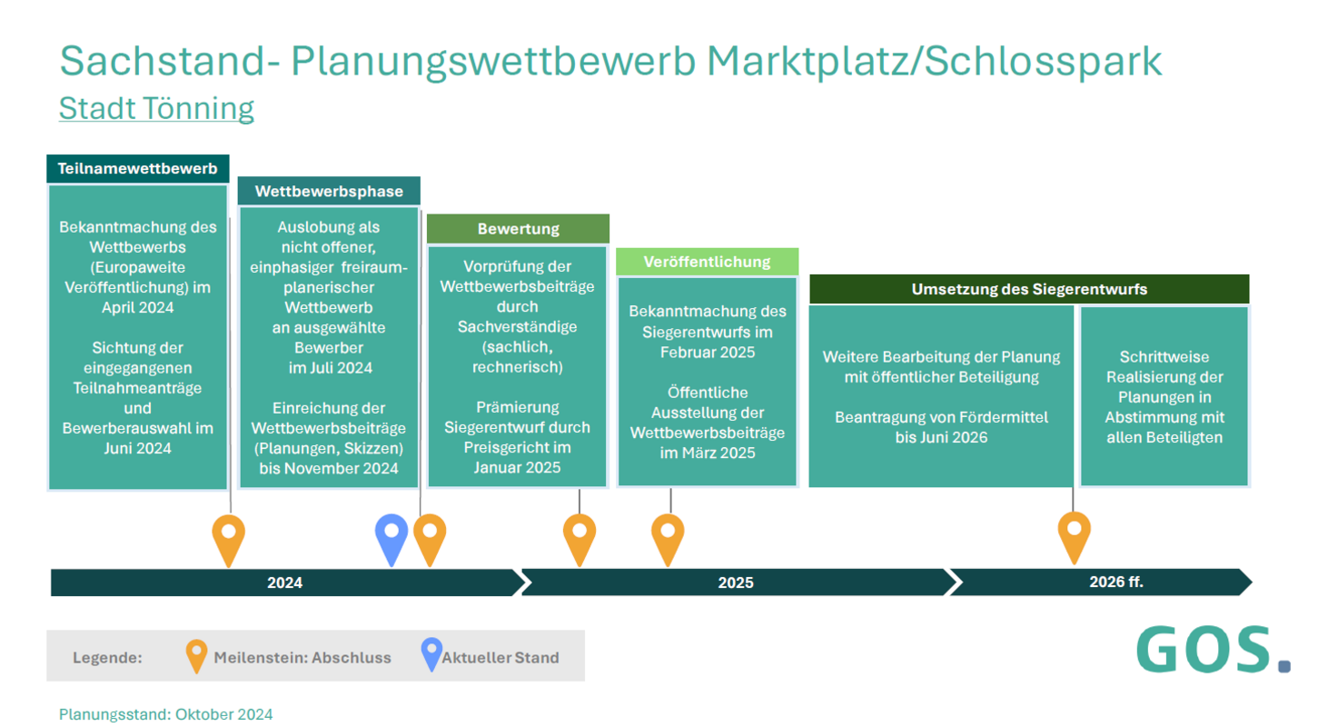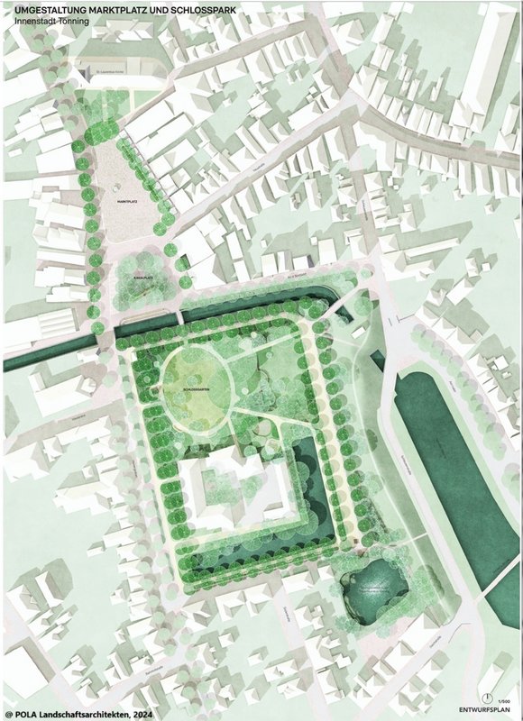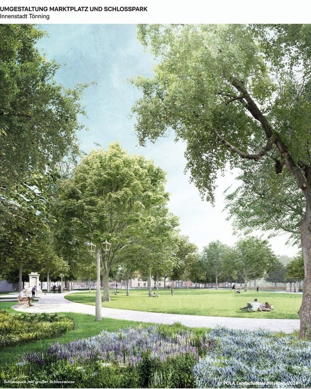 Dieser Planungsprozess wurde durch das Städtebauförderungsprogramm „Lebendige Zentren“ unterstützt, welches einen freiraumplanerischen Realisierungswettbewerb für die Umgestaltung des Marktplatzes und des Schlossparks in Tönning ermöglichte.