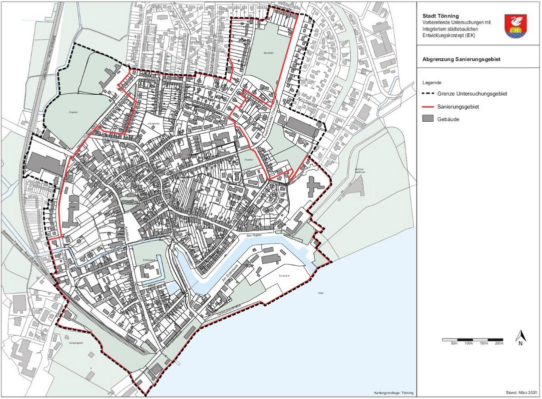 Die Sanierungssatzung über das Sanierungsgebiet „Innenstadt“ der Stadt Tönning wurde am 20.08.2020 durch die Stadtvertretung beschlossen und trat zum 05.10.2020 in Kraft.